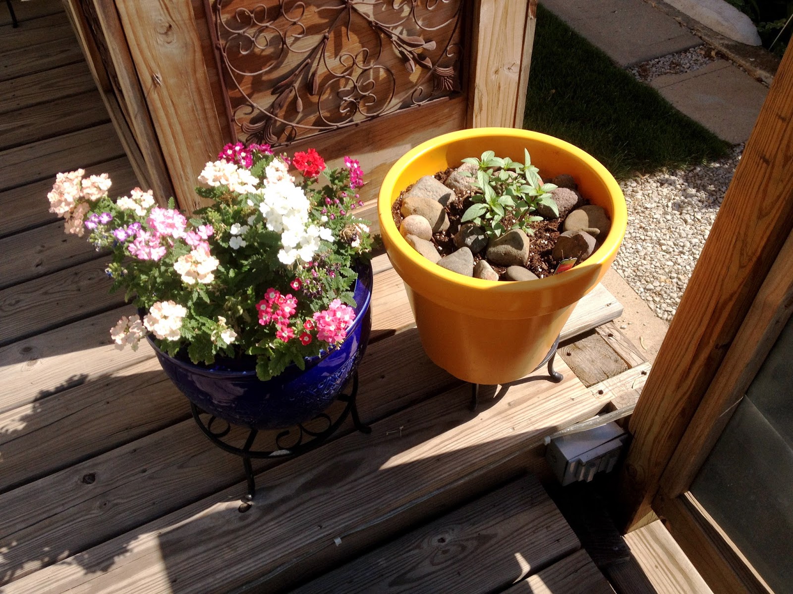 I wasn't going to initially include this as a post BUT I did spend an afternoon potting flowers for our front and back porches and Jake spent a day cleaning out the planter and pots full of dead herbs grass from the area where we wanted to plant some veggies. And I also wanted to show everyone how pretty all the flowers in our yard are!